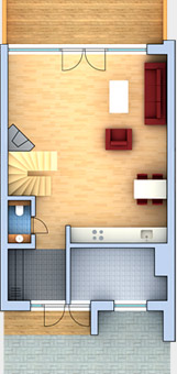 Sisepind: 124.8 m² I k. Terrass ees: 3.5 m² I k. Terrass taga: 10.8 m² Katuseterrass-varjualune: 58.6 m² Välispind kokku: 72.9 m²