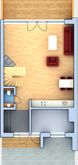 Sisepind: 124.8 m² I k. Terrass ees: 3.5 m² I k. Terrass taga: 10.8 m² Katuseterrass-varjualune: 58.6 m² Välispind kokku: 72.9 m²