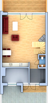 Sisepind: 124.8 m² I k. Terrass ees: 3.5 m² I k. Terrass taga: 10.8 m² Katuseterrass-varjualune: 58.6 m² Välispind kokku: 72.9 m²